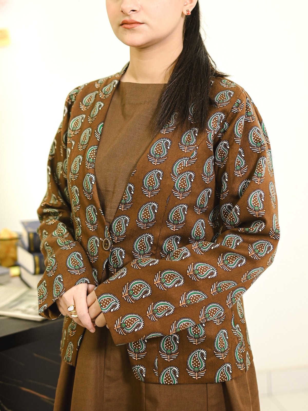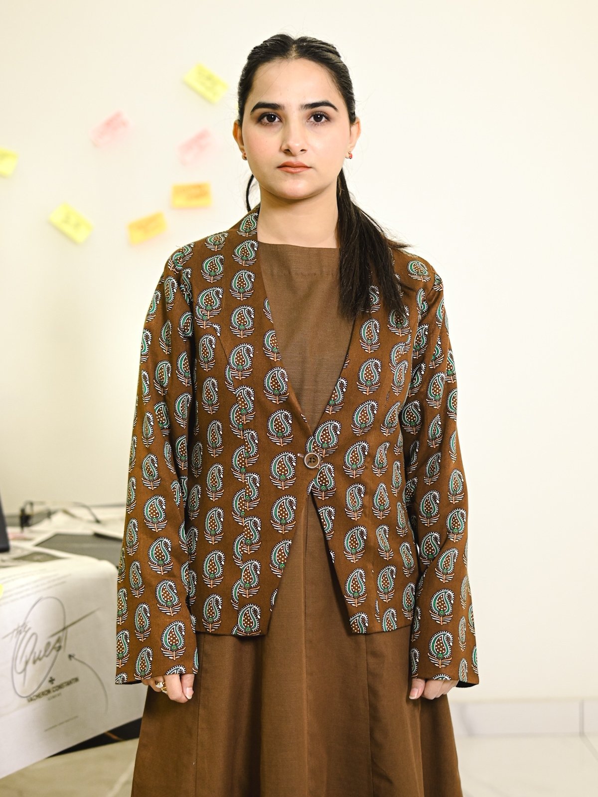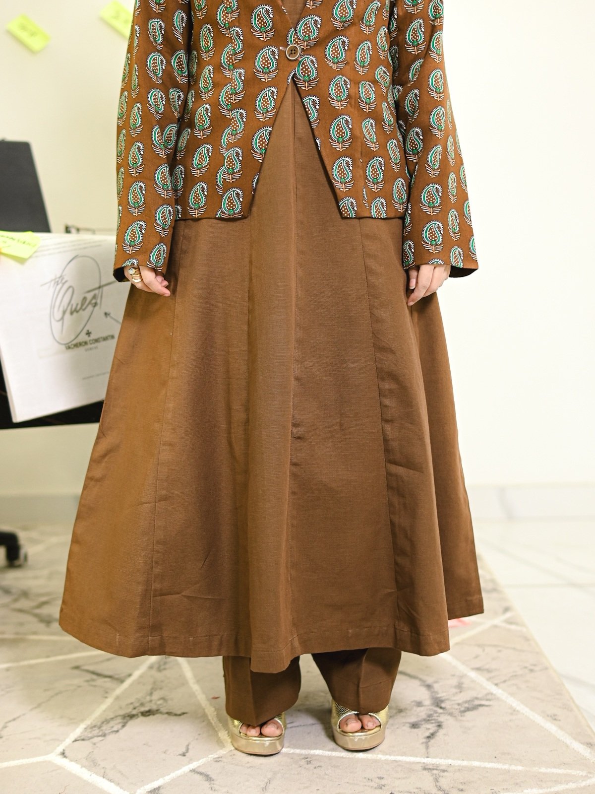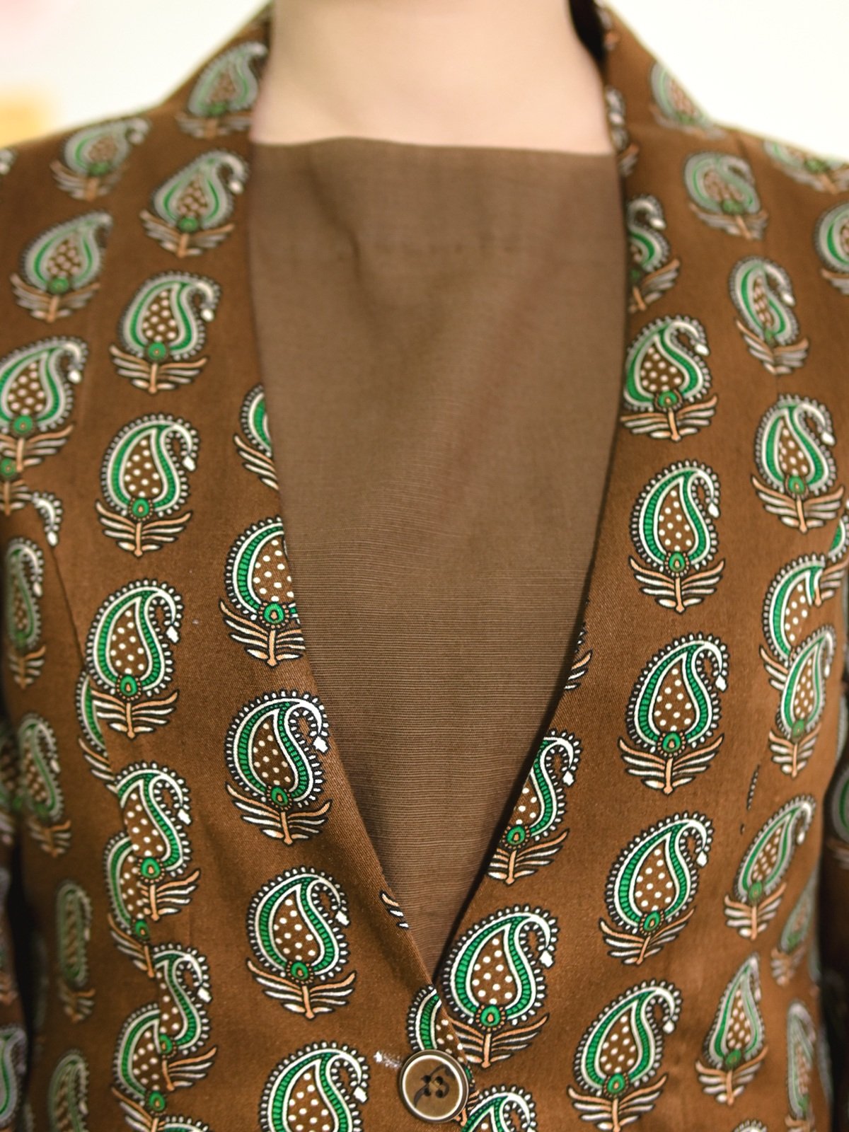 Refined fern-green ensemble blending traditional khaddar with modern executive styling.