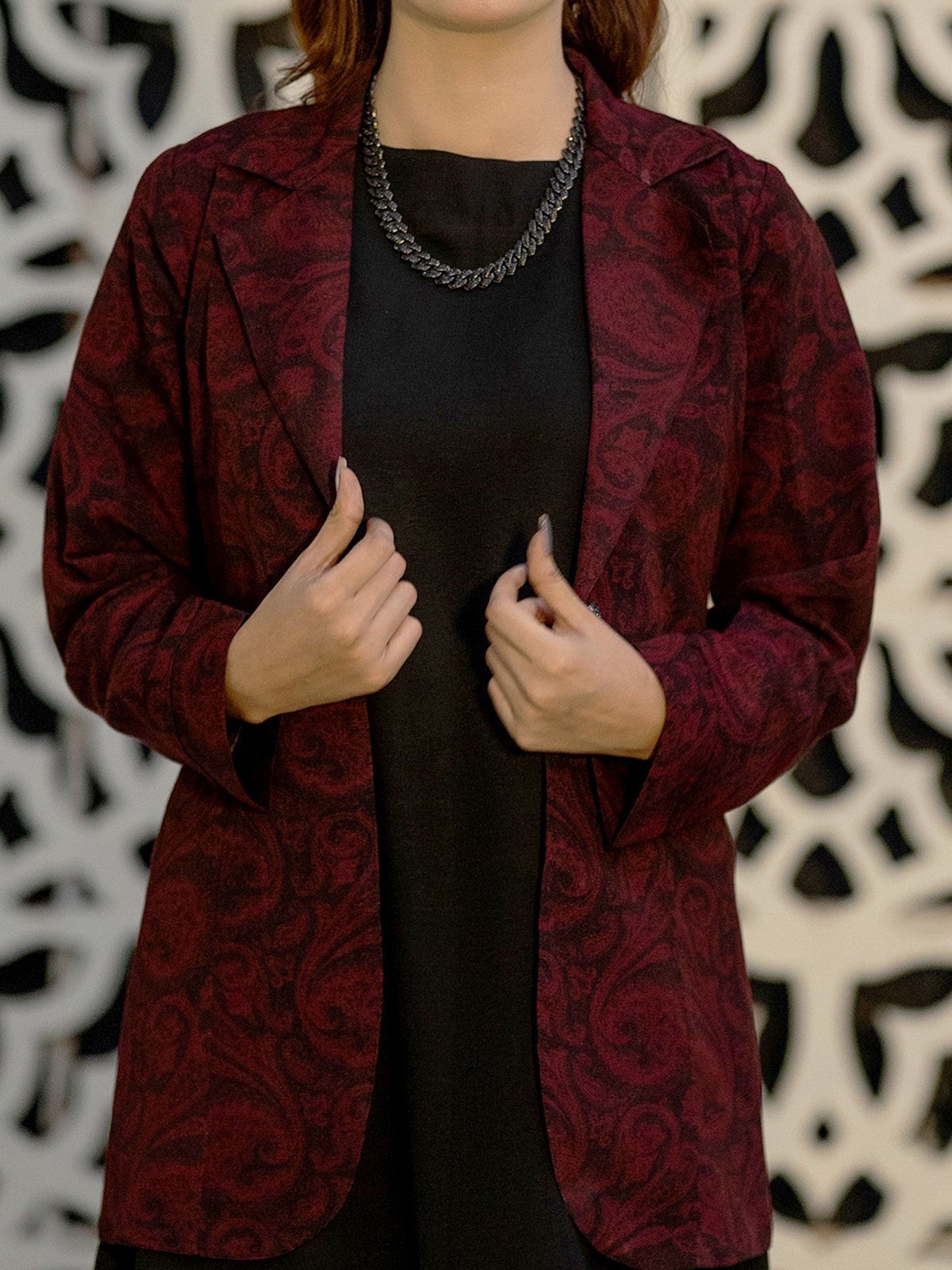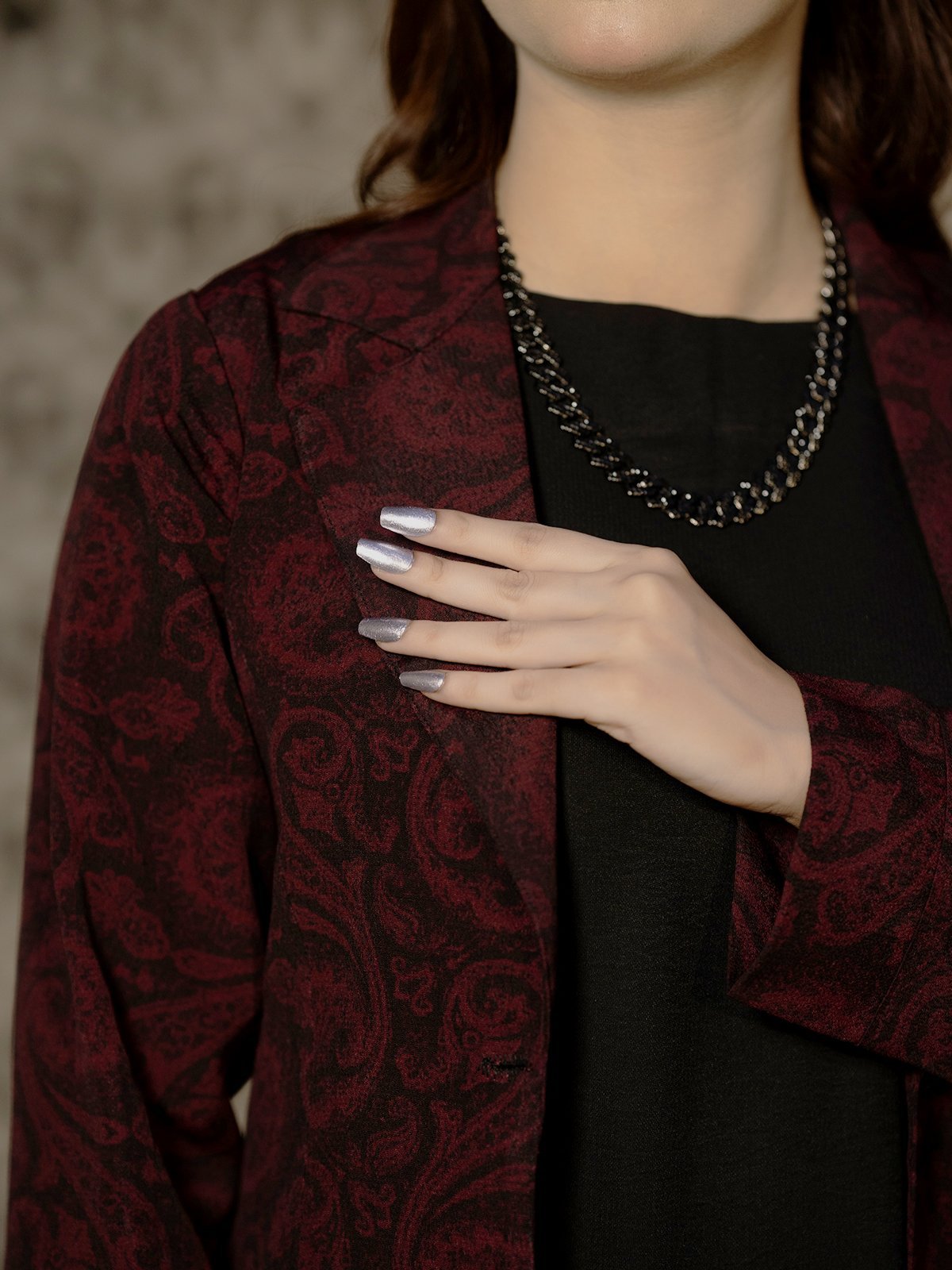 Color Type: Black (shirt pant), Maroon Paisley Printed Jacket